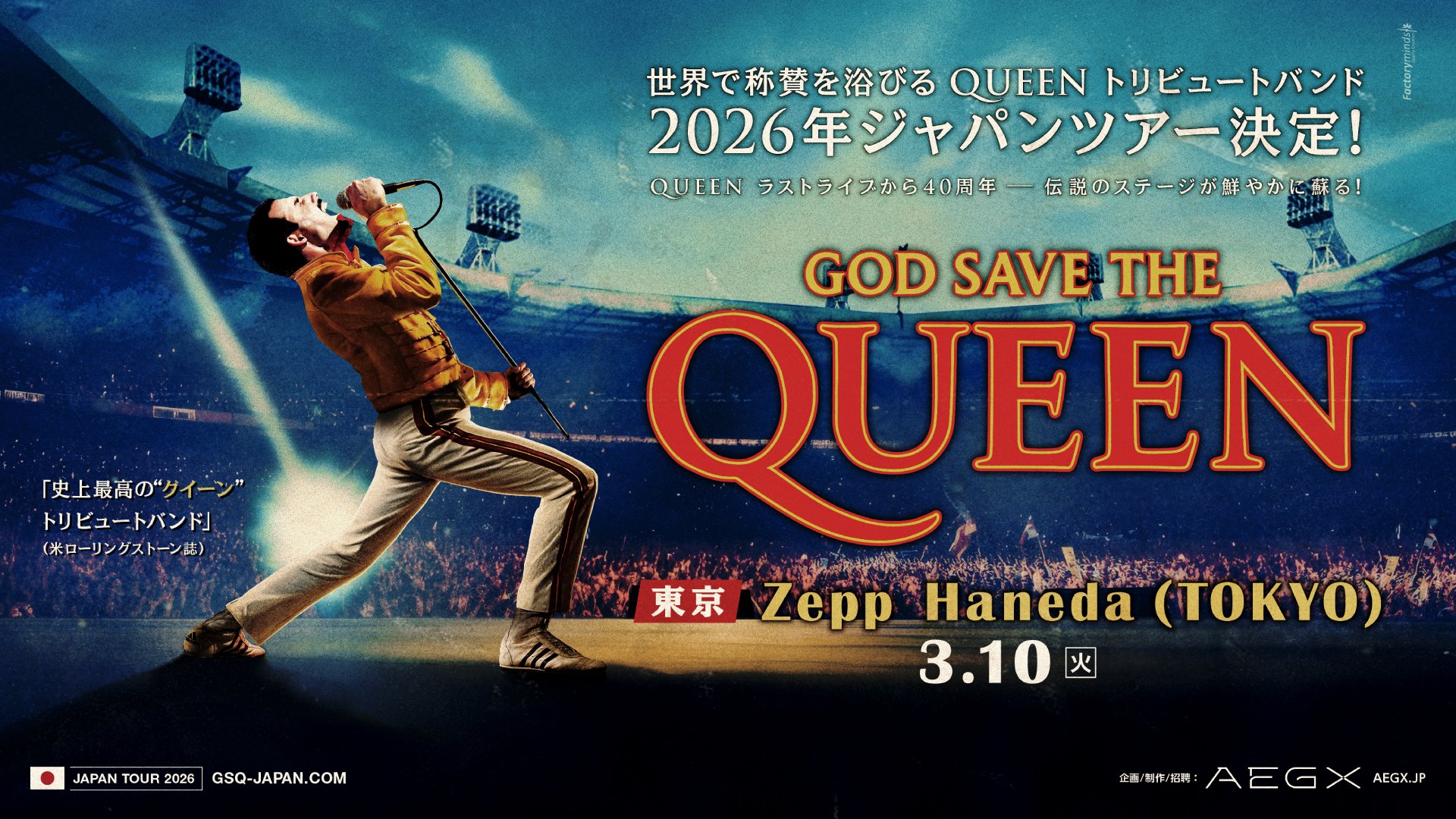 QUEENオリジナルメンバーによるラストライブから40年となる2026年、自身来日最大規模の6都市を巡るジャパンツアーを発表したGod Save The Queen。